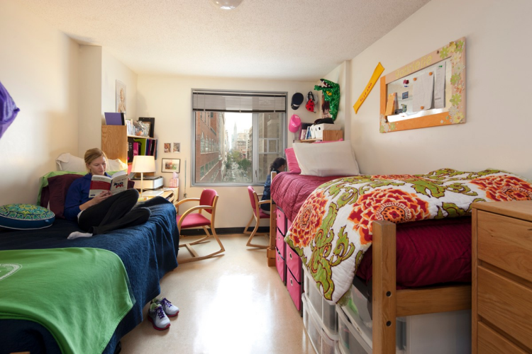 Almost every university has on-campus student accommodation and living on campus is a great option to interact with other students. Along with traditional dormitories also known as residence halls, which have a single or shared room facility, some universities also have studios and 2, 3 or 4 bedroom apartments where students can occupy a single room each and share a common living area or a kitchen.